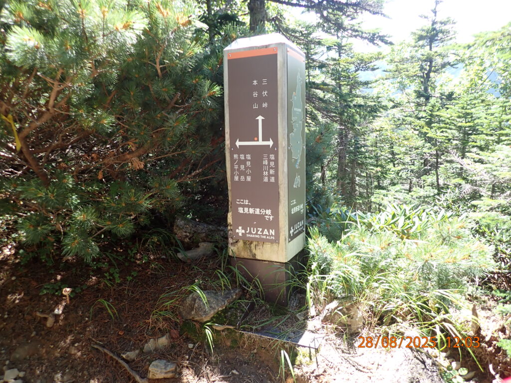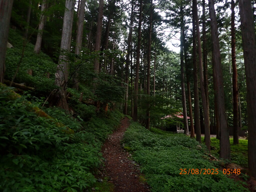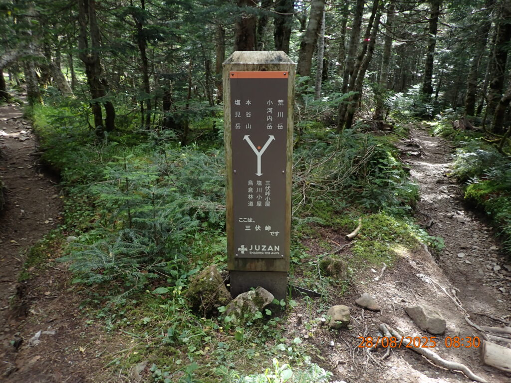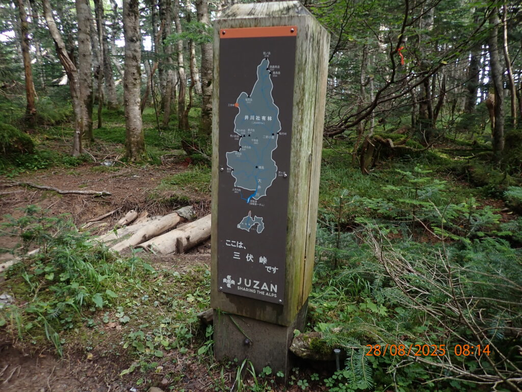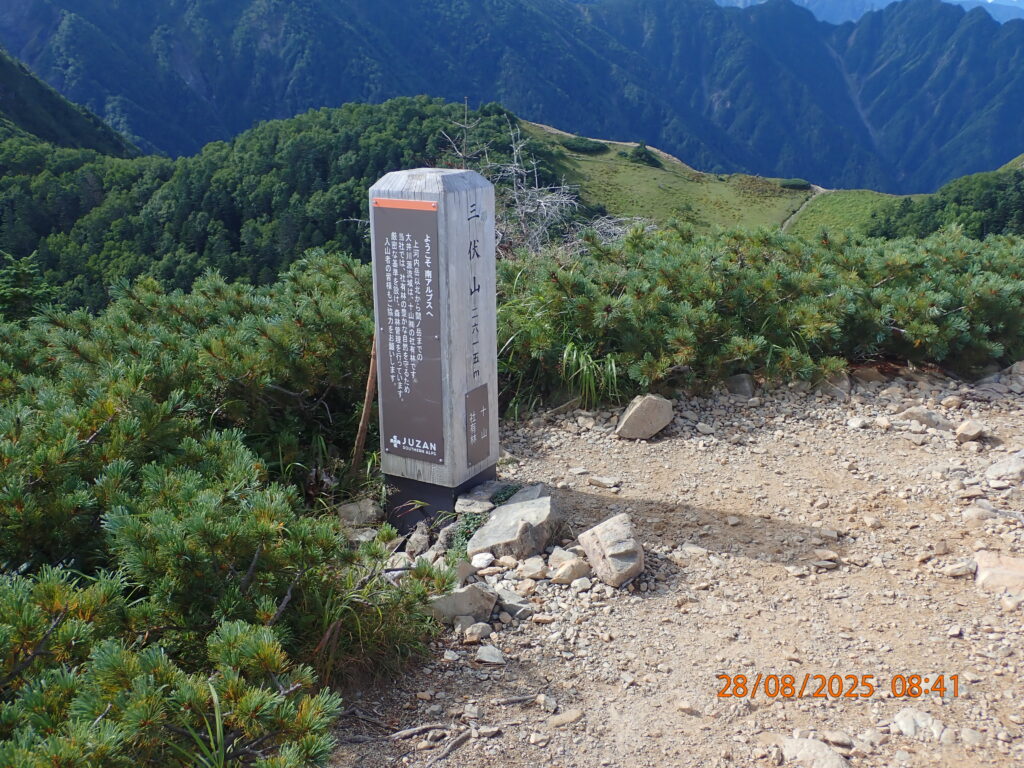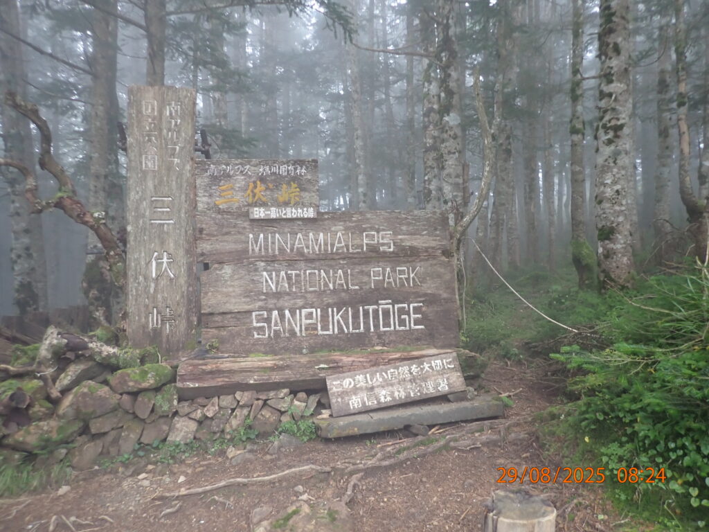 三伏峠を超えたあたりでトラブル発生。水でカップラーメン食ったせいだ。45分ほどロス。