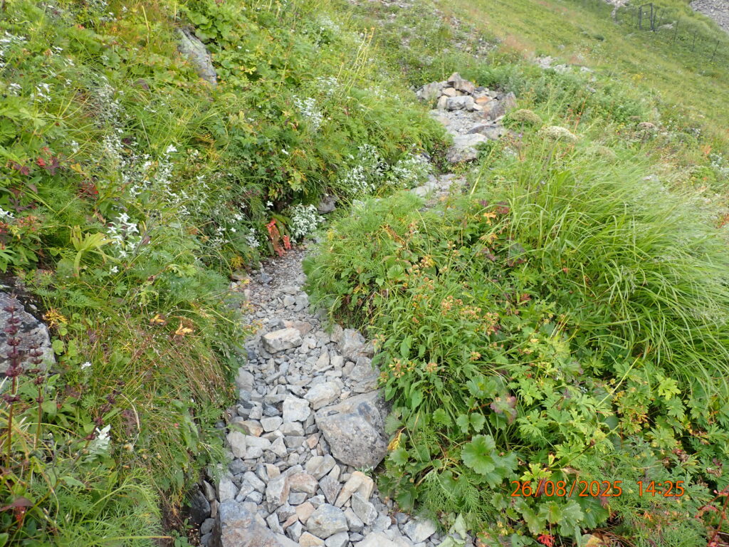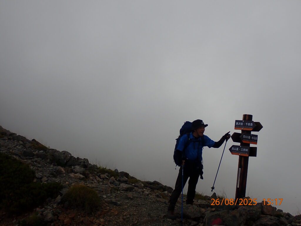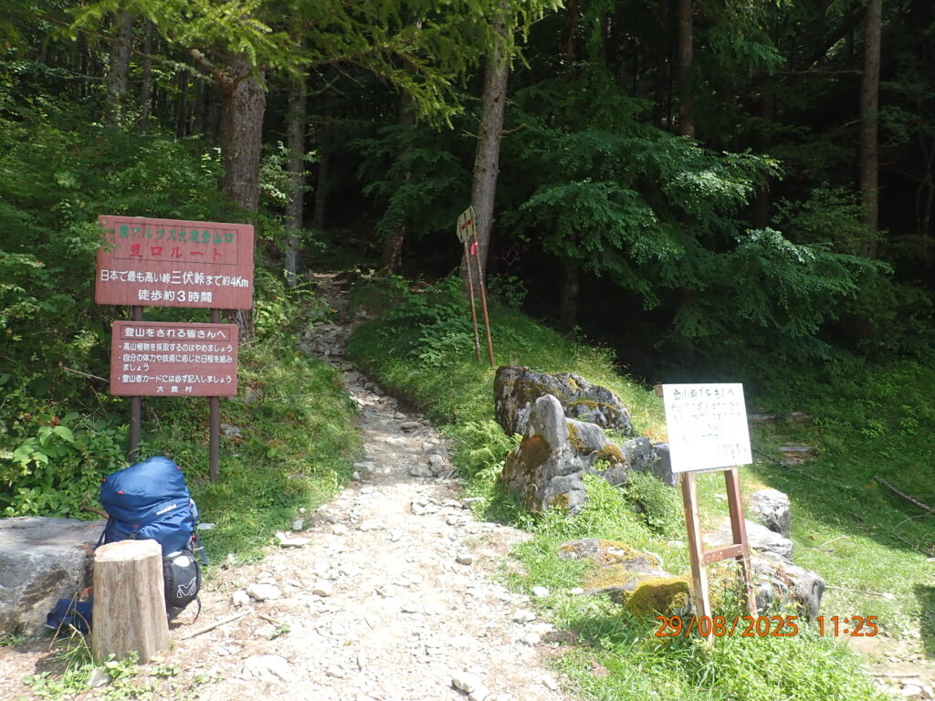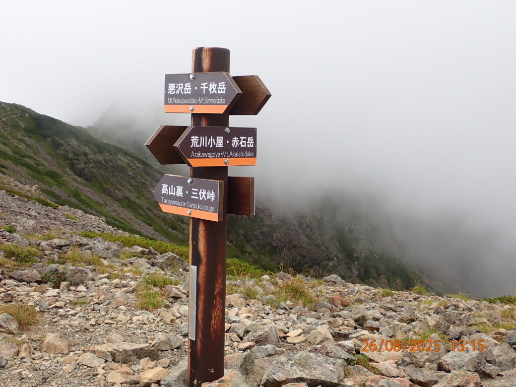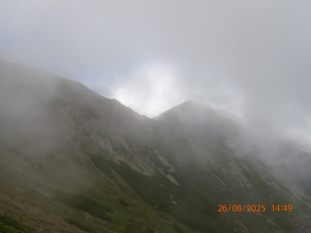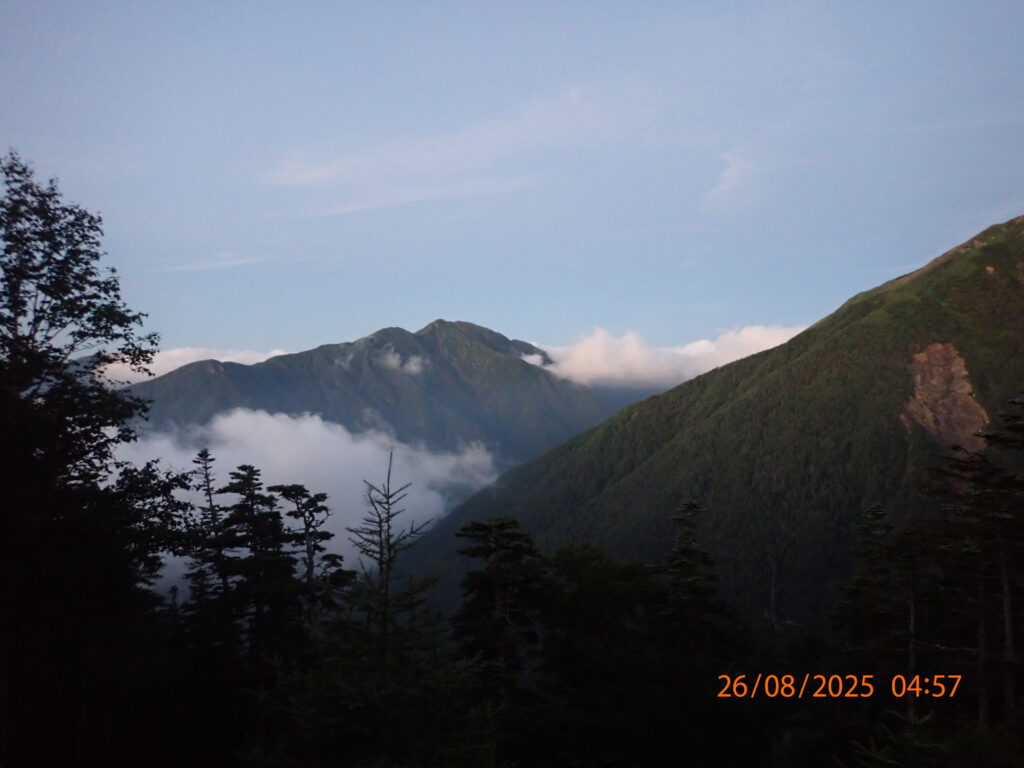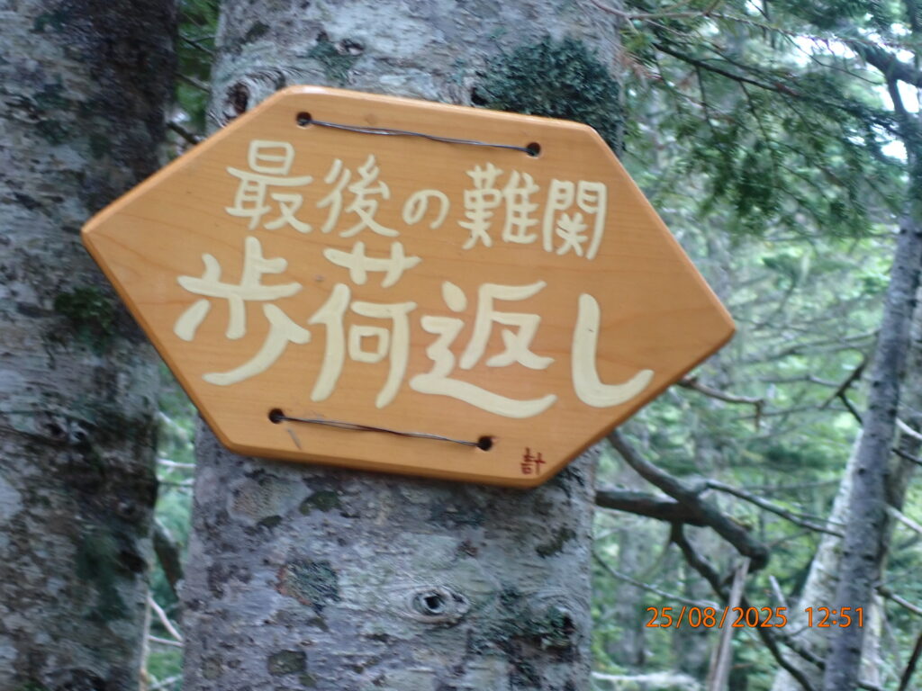 チェックインして、13時10分塩見岳へ出発。途中雲行き怪しい、普通3時間くらいだそう、俺だったら4時間か。17時前後か。迷って迷って、断念する。戻る途中登る人4人ほどいたが、人は人、俺は俺と、きっぱり諦めたけど、悔しい。