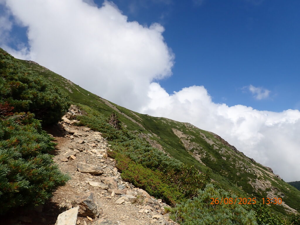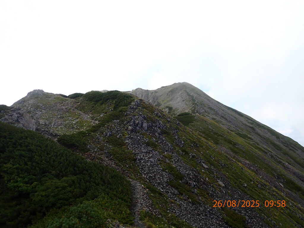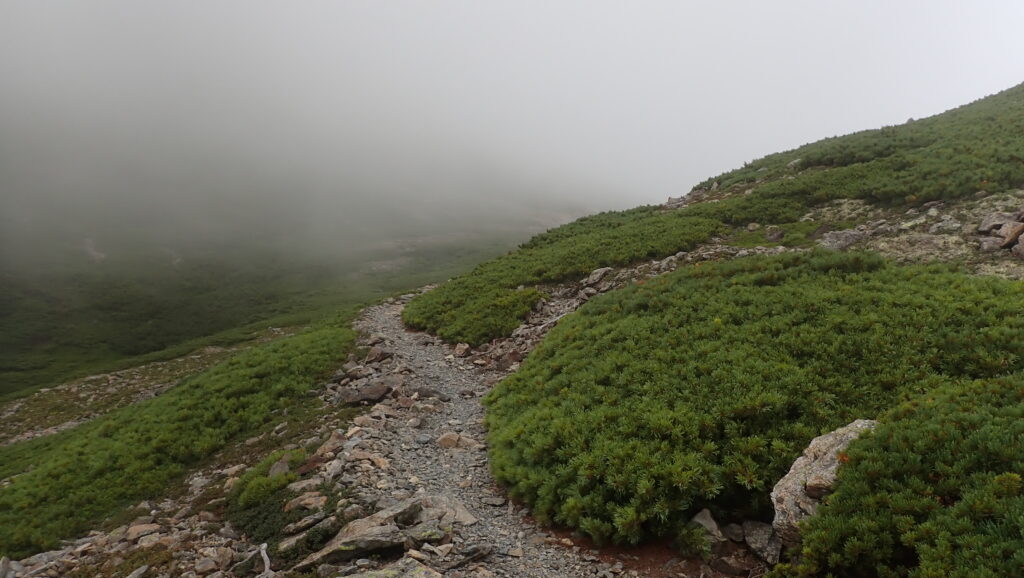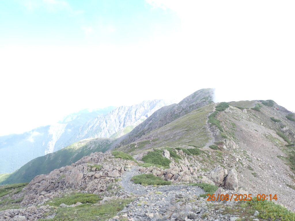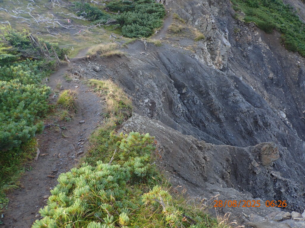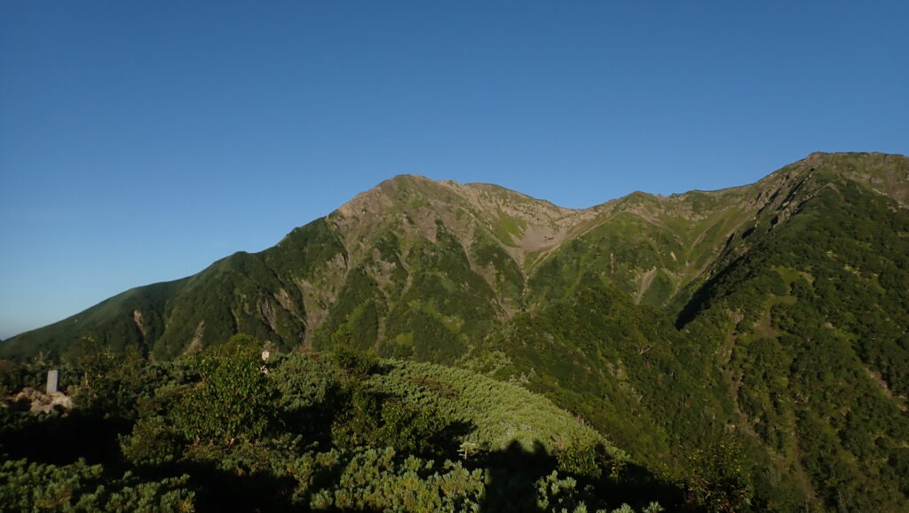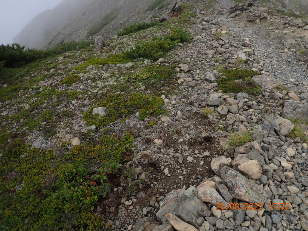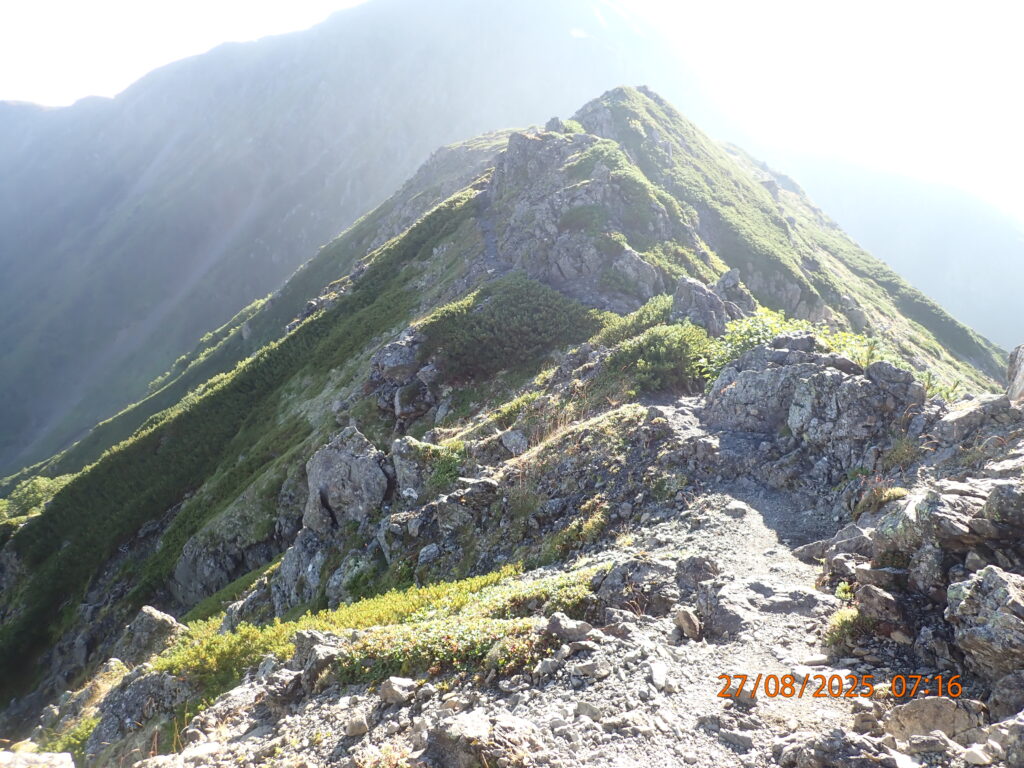いつものことだが、縦走は、尾根歩きというより登って下ってだ。今回は森林限界をはさんで、上がったり下がったり、5. 600m上下がきつい。