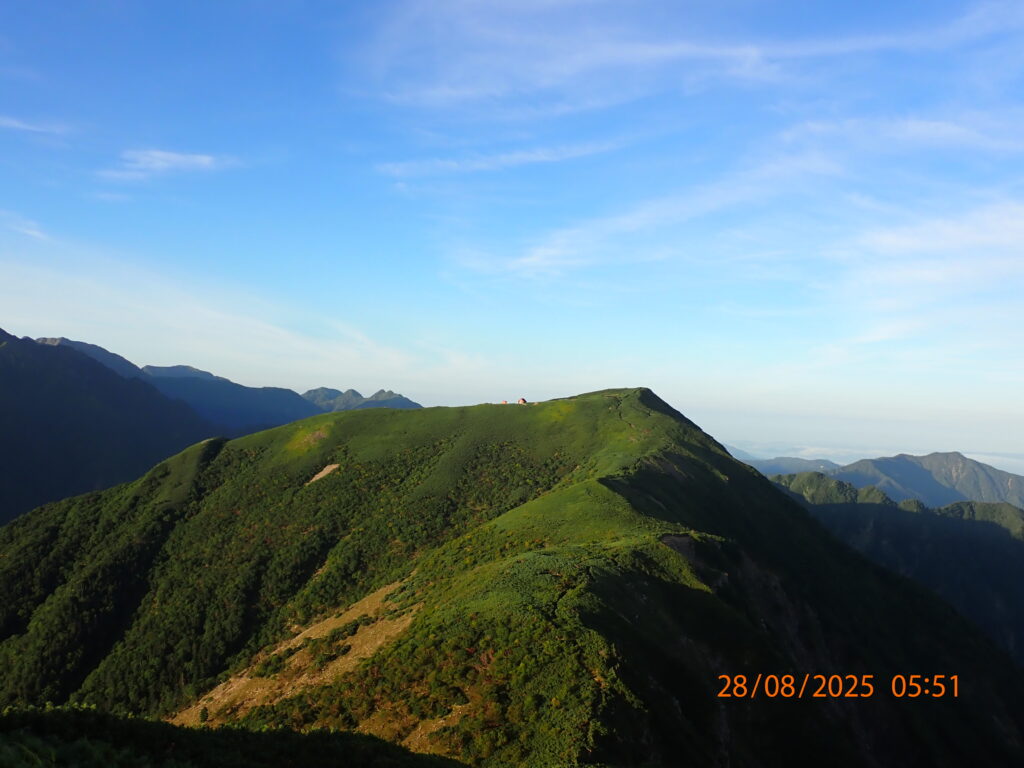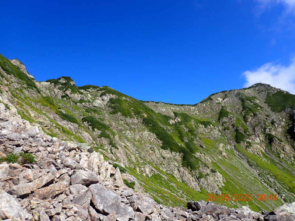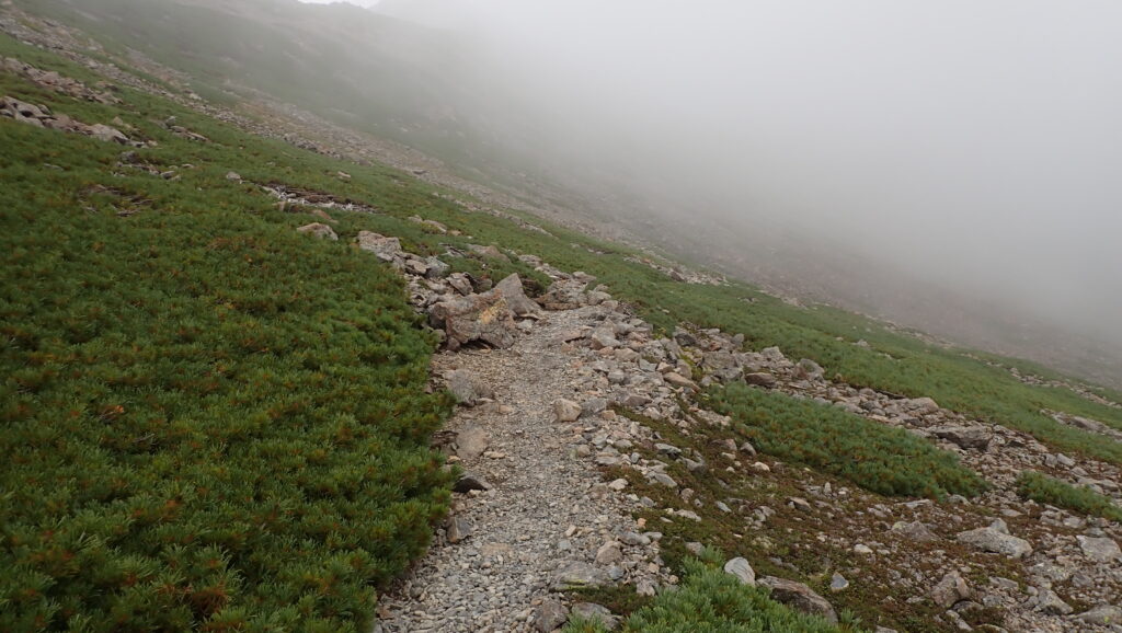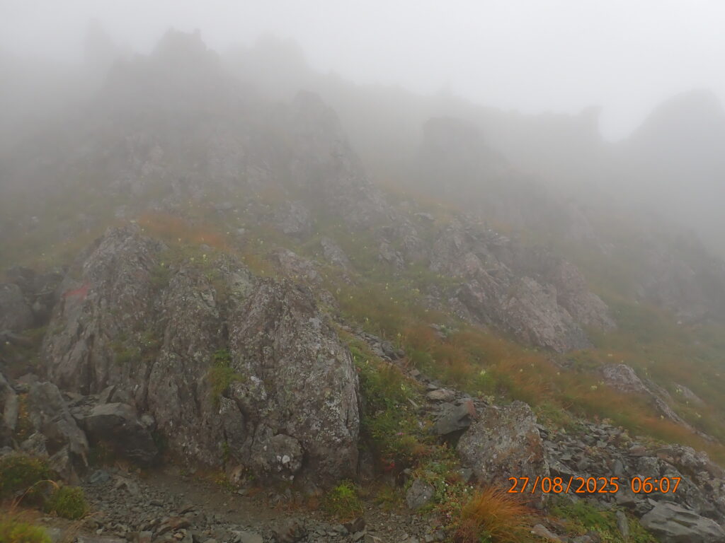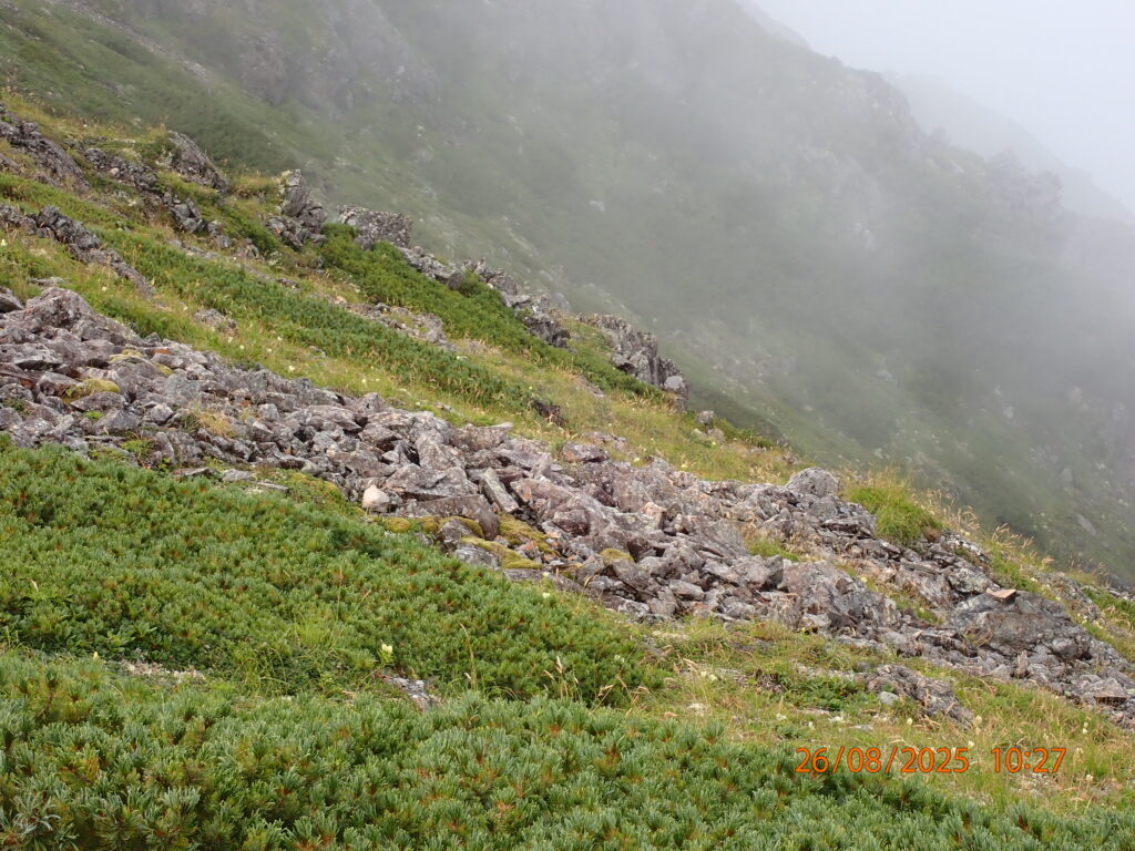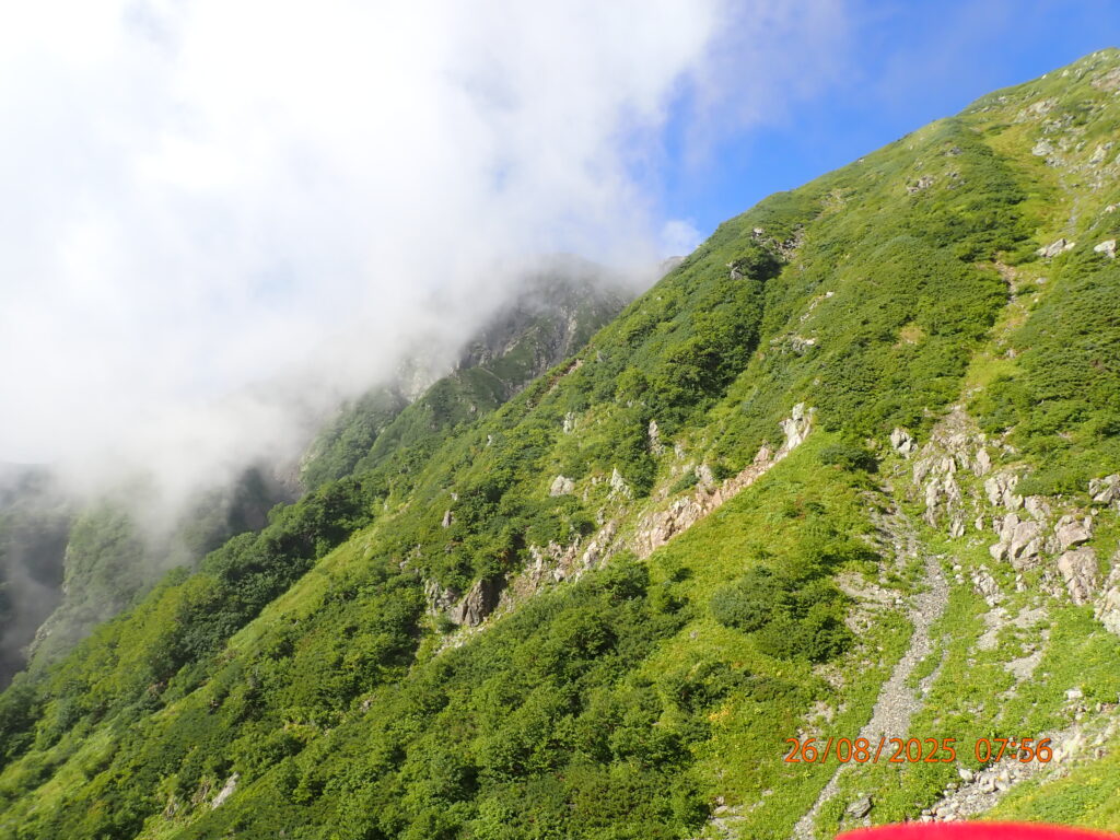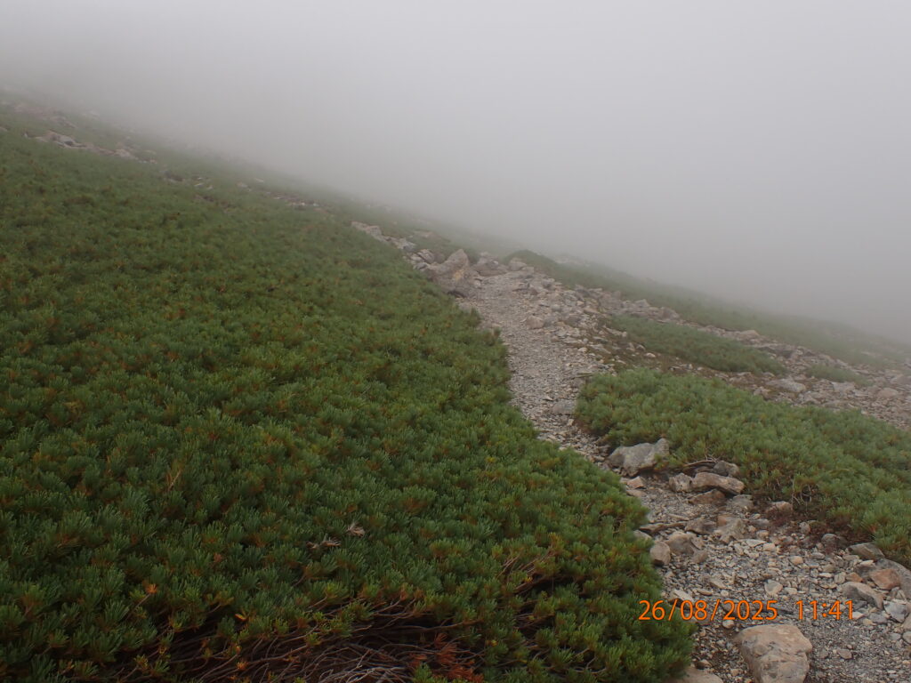 いつものことだが、縦走は、尾根歩きというより登って下ってだ。今回は森林限界をはさんで、上がったり下がったり、5. 600m上下がきつい。