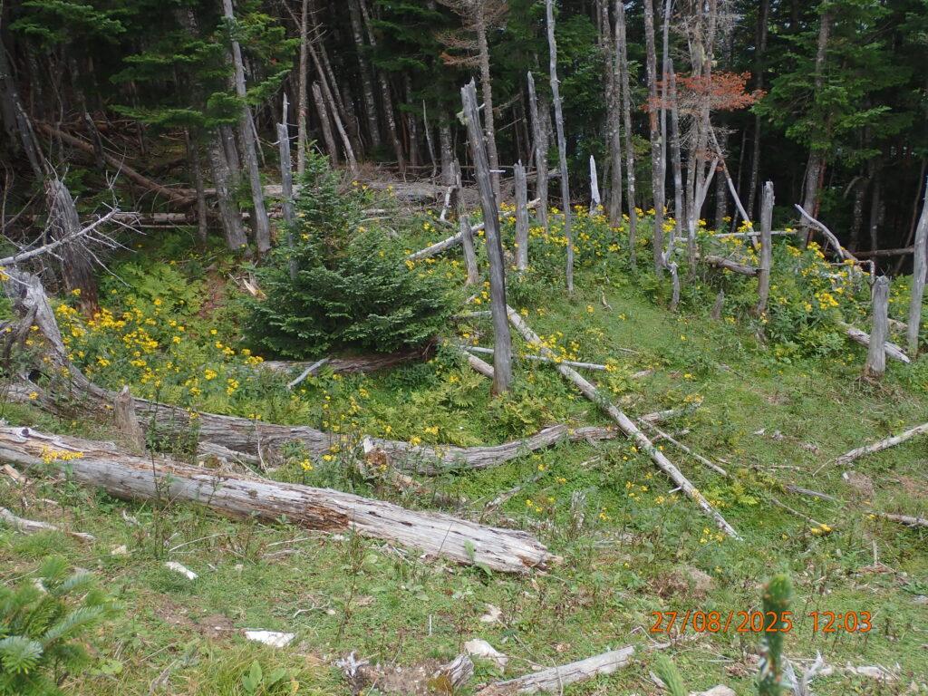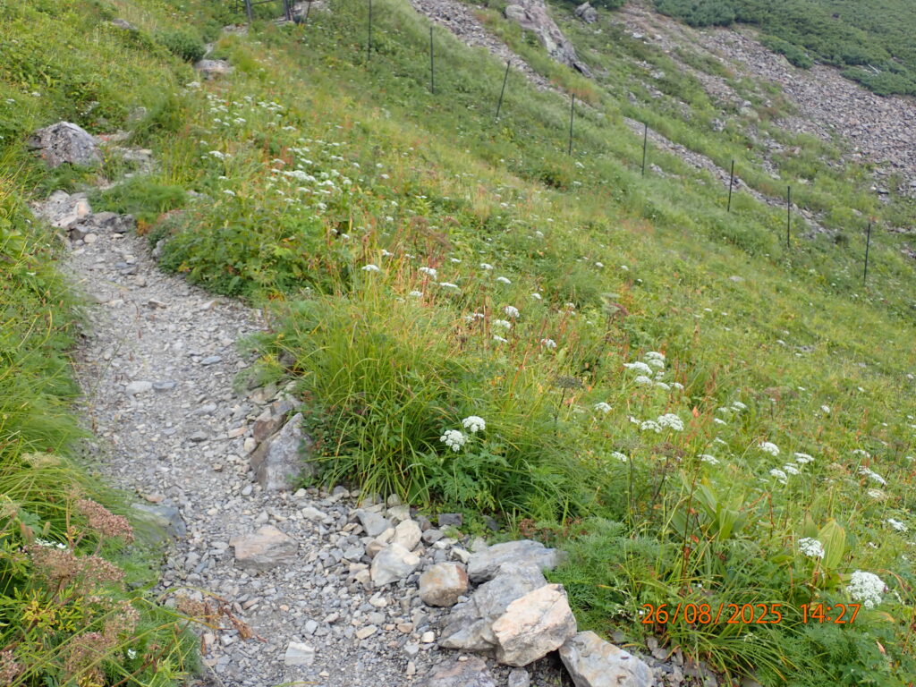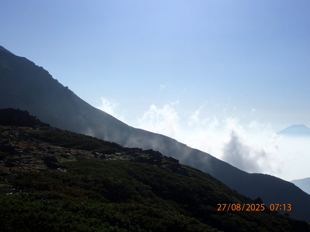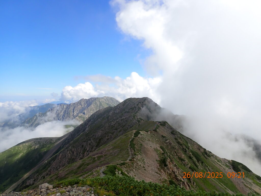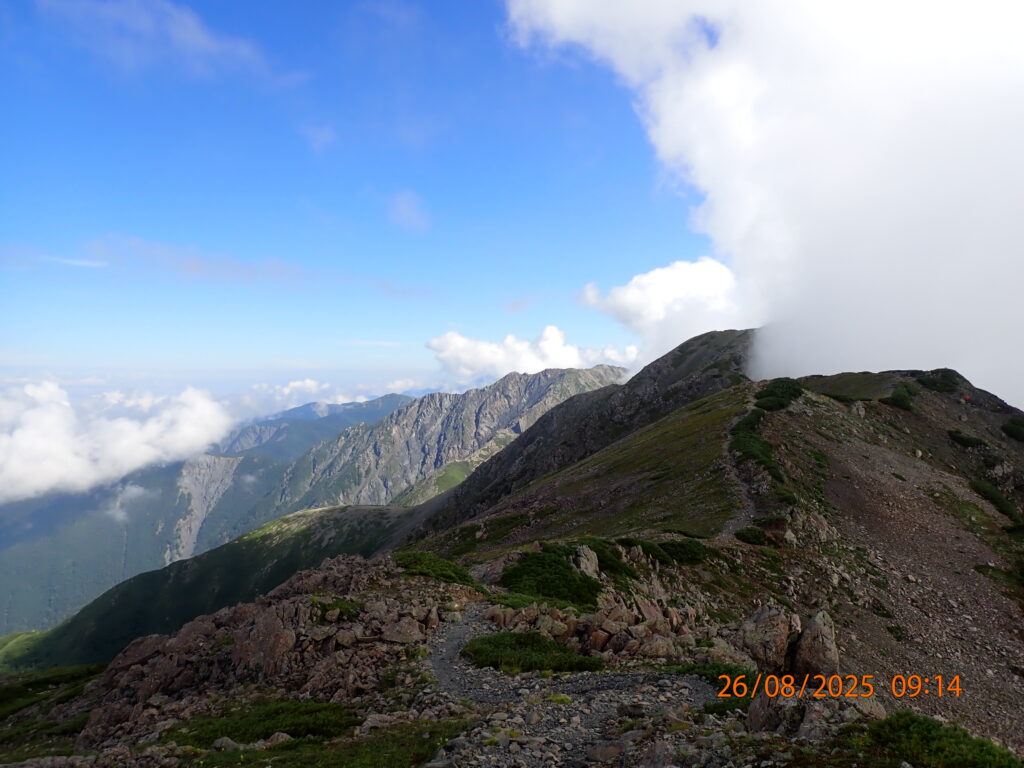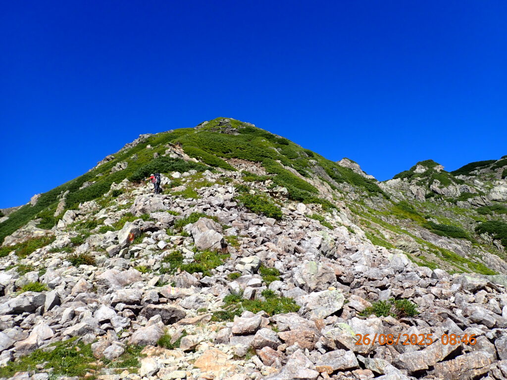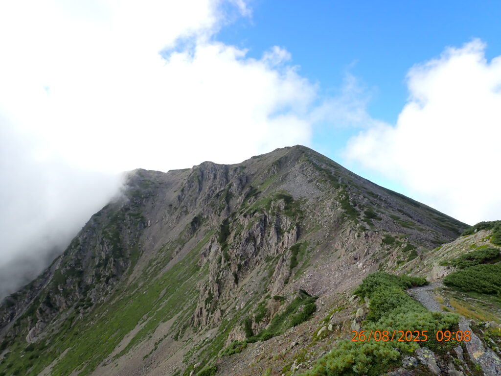 いつものことだが、縦走は、尾根歩きというより登って下ってだ。今回は森林限界をはさんで、上がったり下がったり、5. 600m上下がきつい。