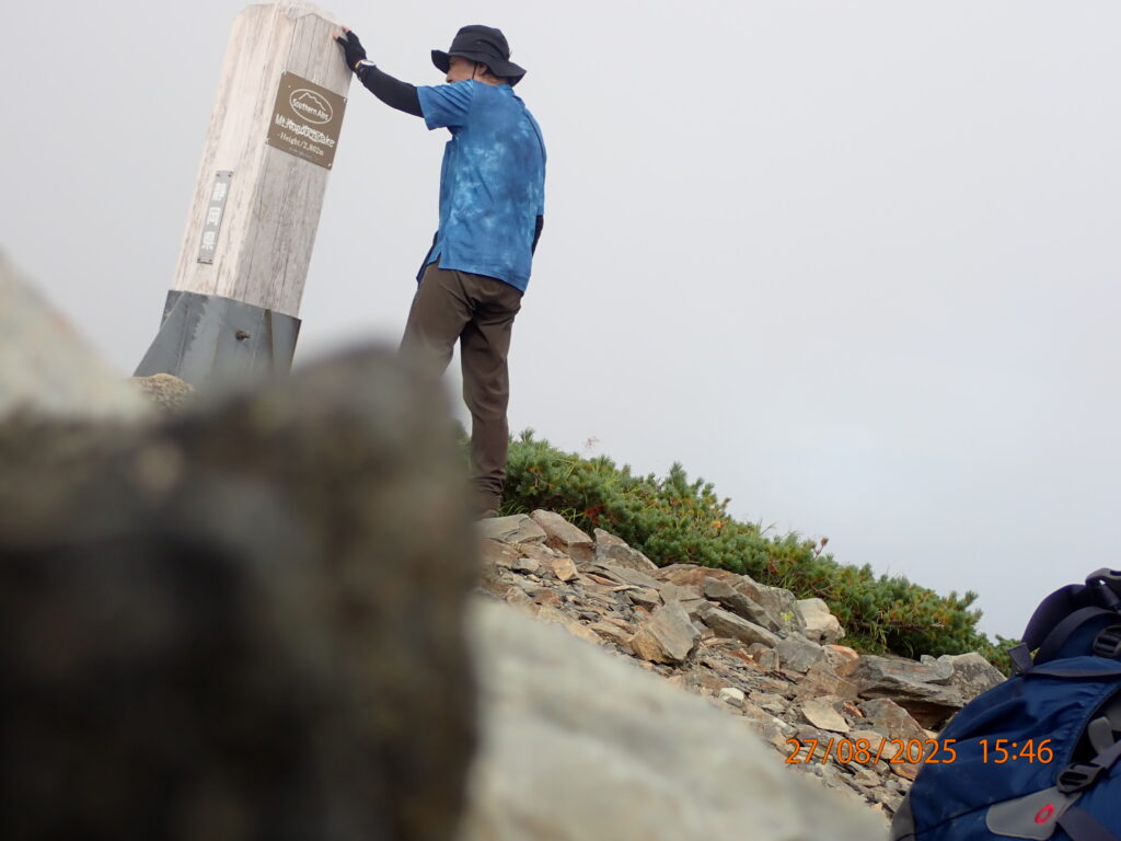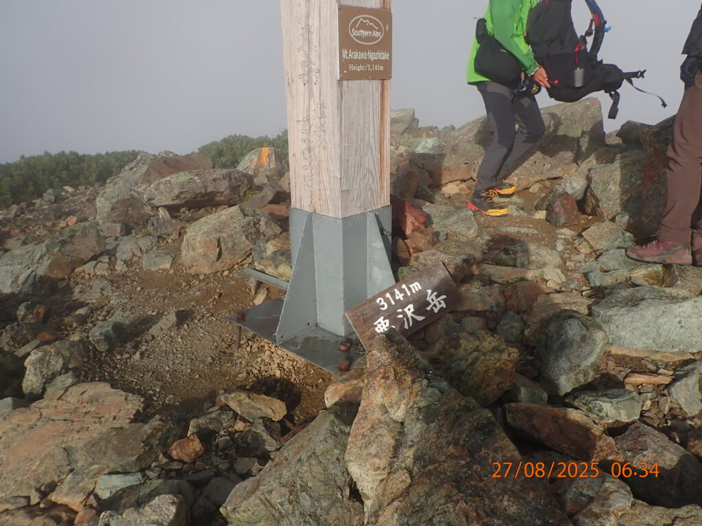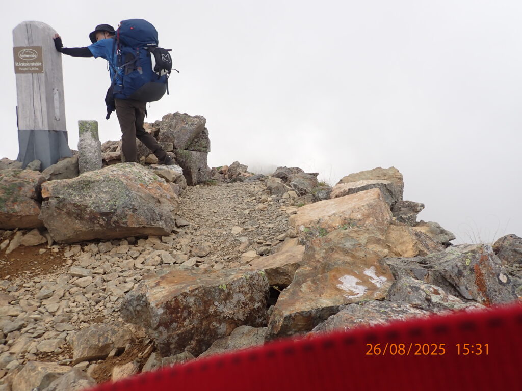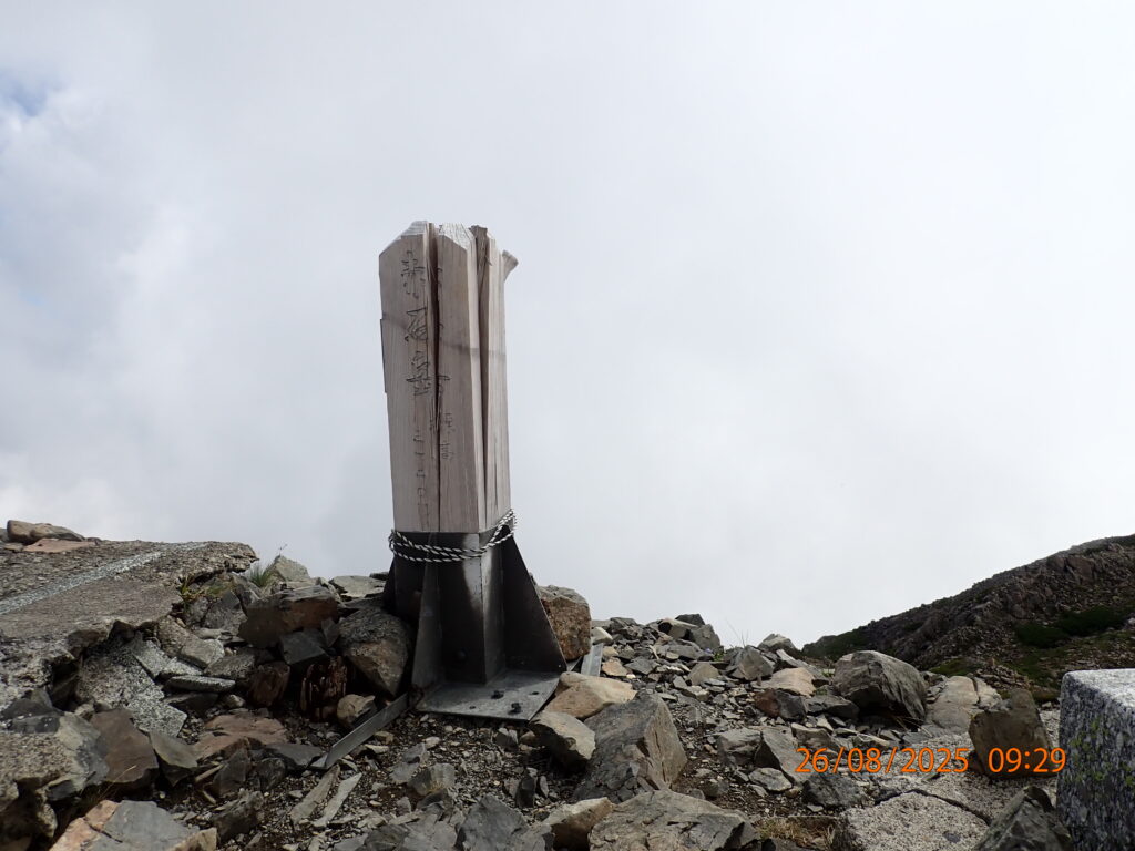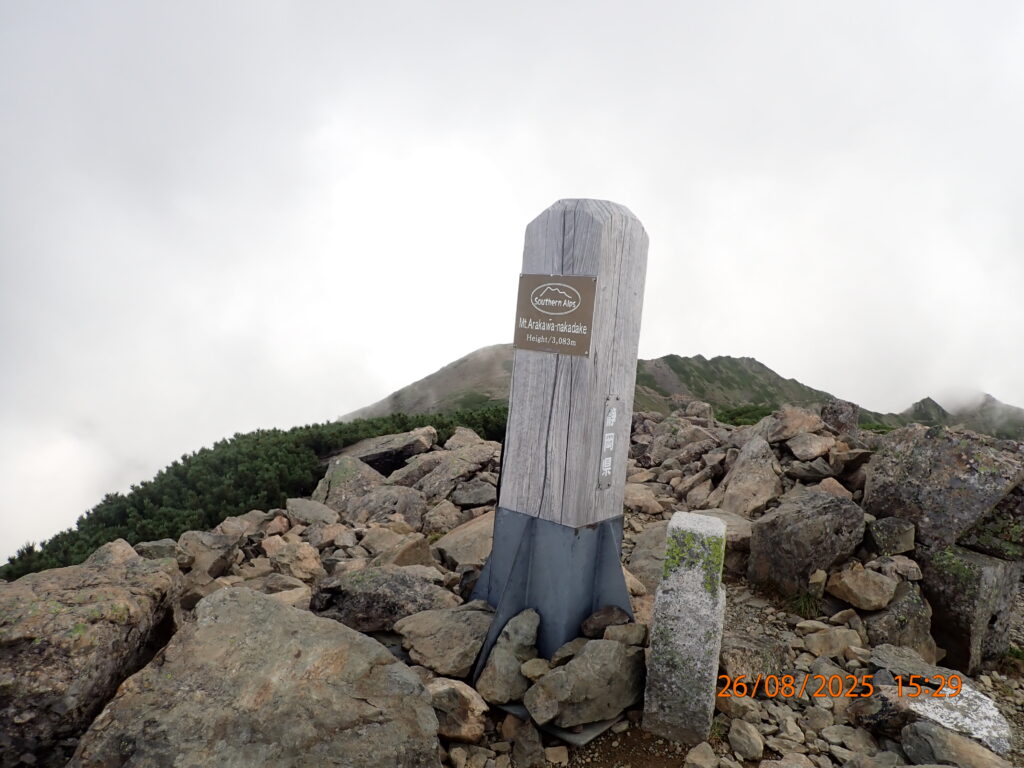 荷物小屋にデポして、悪沢岳に。強風、怒ってる。思わず良沢岳の呼んでやるから許して。とか言いながら強風をこらえながら登る。