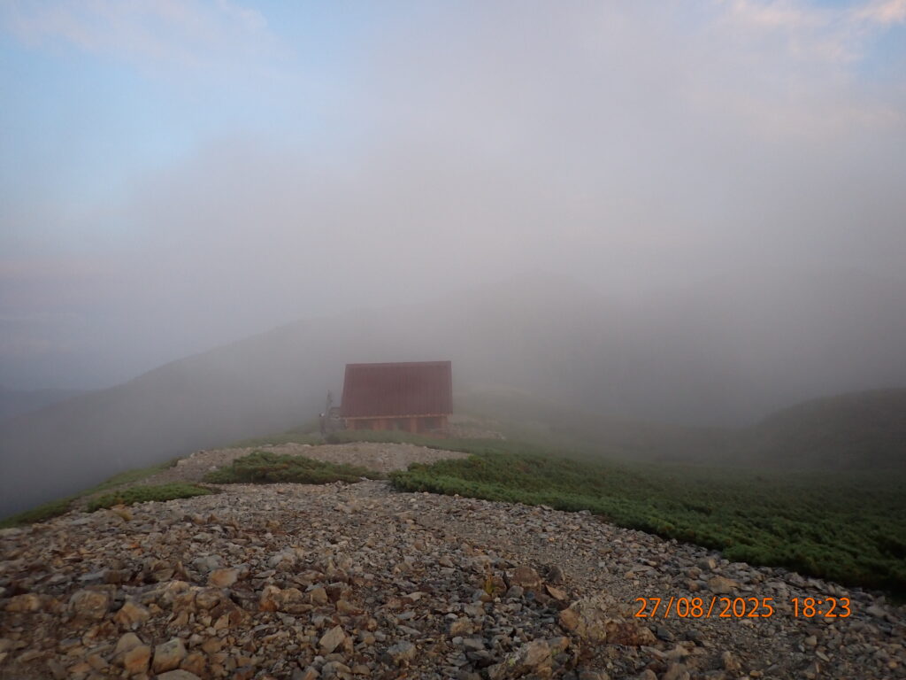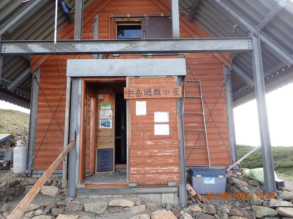 今日の小屋は荒川中岳避難小屋。水無。食事なし。