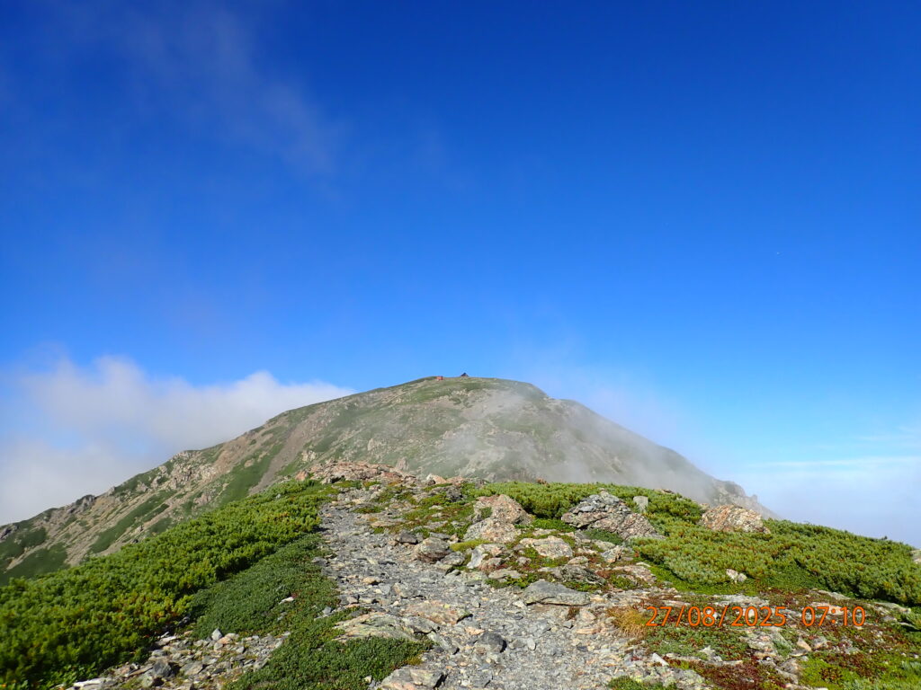 荒川小屋2650mから荒川中岳避難小屋3047mまでほぼ直登。小屋番さん優しい。水2L買う。
