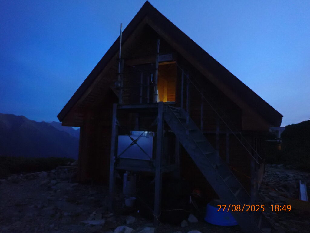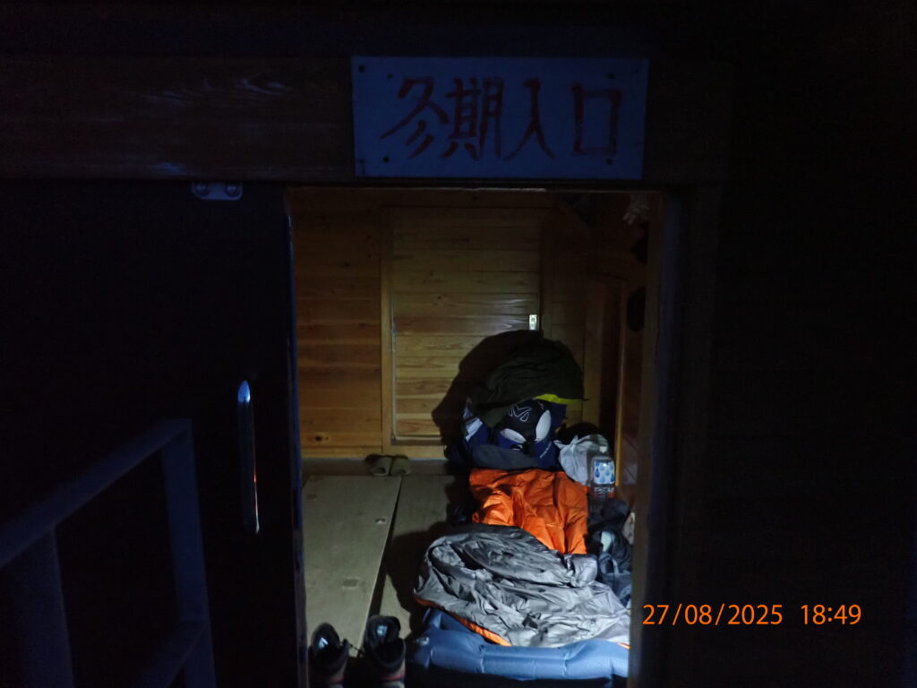 小屋締め中1階は不可、2階の冬季緊急避難小屋2畳ほどのスペース。まぁ寝るだけなんで、十分かと。